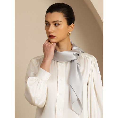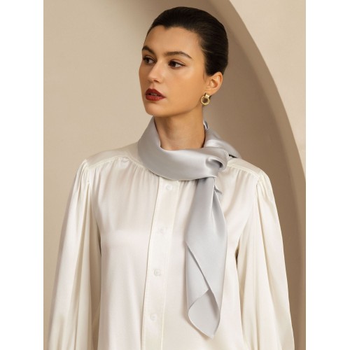 Made from 100% pure silk. this scarf offers a smooth and premium feel. Its timeless solid color design ensures it complements any wardrobe. Ideal for versatile styling as a neck scarf. headscarf. or bag accessory. The perfect size for everyday wear and a thoughtful. elegant gift for any occasion.