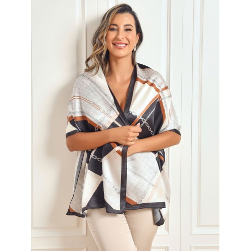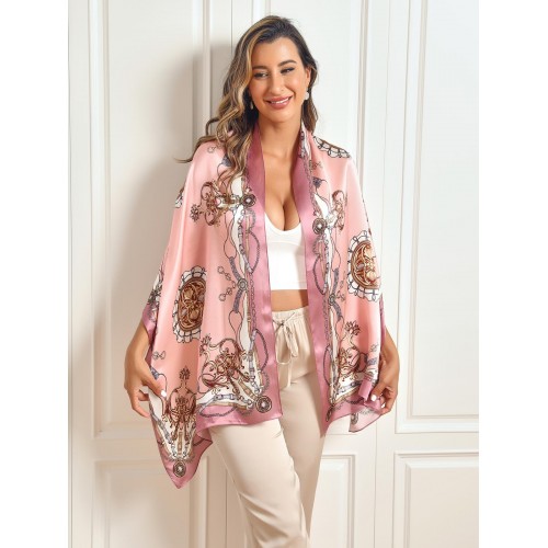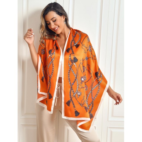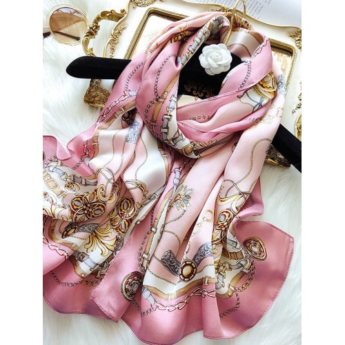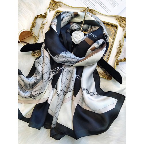 100% Mulberry Silk Printed Rectangular Long Shawl Scarf 170x53cm