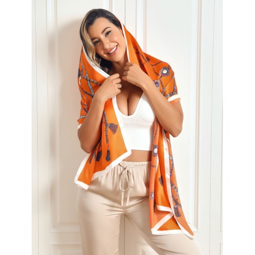 Made from premium mulberry silk. this scarf offers a beautifully smooth texture that drapes effortlessly. Its refined design brings a sophisticated touch suitable for both everyday wear and formal occasions. Lightweight and fluid. it can be styled in multiple ways—around the neck. as a headscarf. tied to a bag. or worn as an accessory accent—making it a truly versatile wardrobe essential that enhances any look with understated elegance.