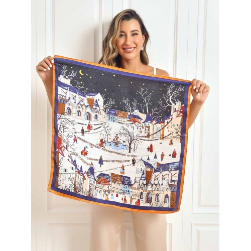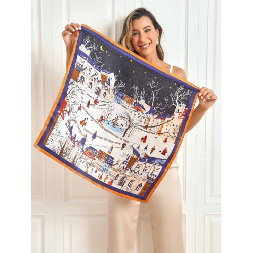Pure Silk Scenery Pattern Square Scarf 68x68cm/26.8