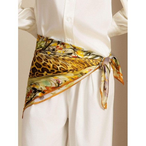 Pure Silk Leopard & Floral Scarf - Size 90x90cm