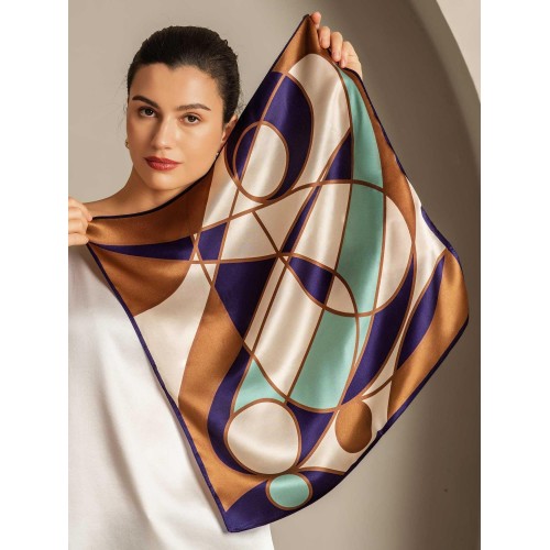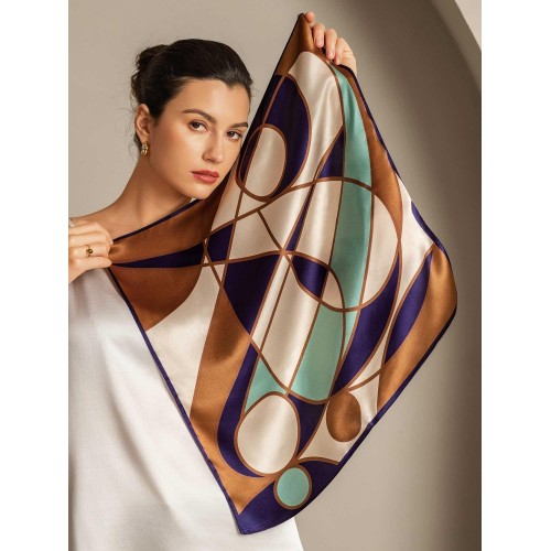 This pure silk scarf offers a luxuriously smooth touch. enhancing your style with its soft. silky texture. Its compact square size is perfect for easy portability. making it a versatile accessory. The design combines bold geometric shapes with graceful curves. creating a stunning balance of structure and fluidity for a truly unique. fashionable statement.