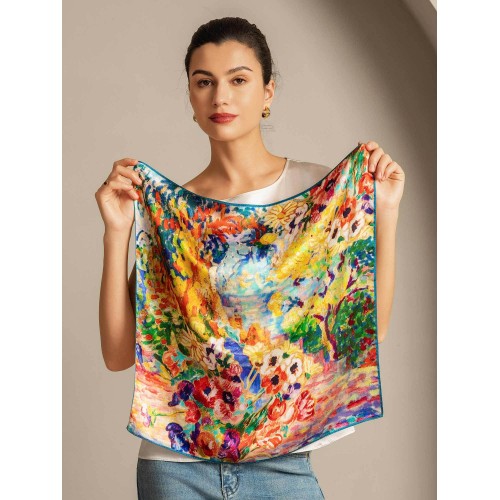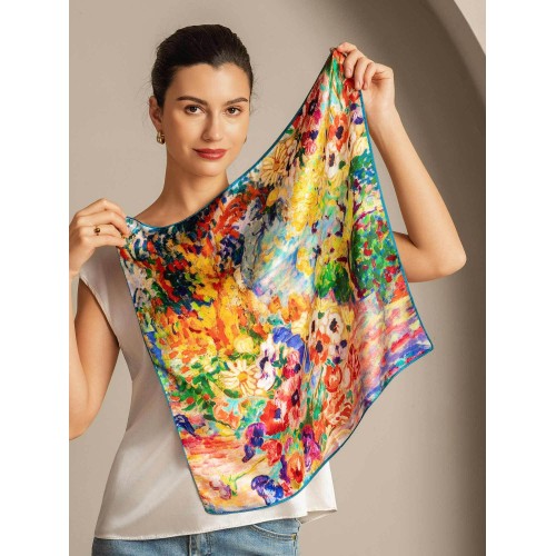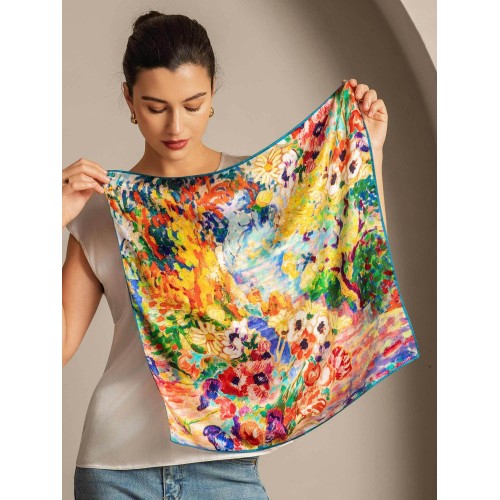 Pure Silk Oil Painting Square Scarf - Size 53x53cm