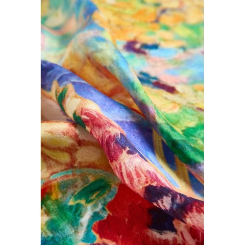 Made from luxurious silk. this scarf boasts a stunning oil painting design that adds an artistic touch to any outfit. The soft texture provides comfort. while the perfect square shape allows for versatile styling. A timeless piece that effortlessly enhances your look with sophistication and creativity.